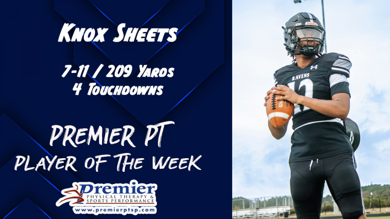 Please Subscribe to our Streaming Platform The Premier PT Player of the Week is Sussex Tech’s Knox Sheets. Know went 7-11 with 209 Yards and 4 Touchdowns in a win