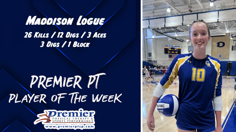 Please Subscribe to our Streaming Platform The Premier PT Player of the Week is Caesar Rodney’s Maddison Logue. Maddison had 26 Kills, 12 Digs, 3 Aces, 3 Digs, and a