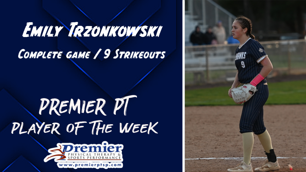 The Premier PT Player of the Week is Delaware Delaware Military Academy’s Emily Trzonkowski. Emily pitched a complete game with 9 Strikeouts in a 3-0 win over No.1 Caravel.